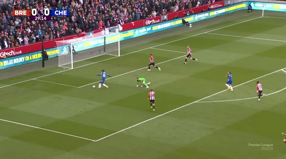 After establishing Palmer’s role, Maresca turned to Noni Madueke, recognizing his ability to dribble quickly, cut inside from the right, and find shooting positions. At that moment, Madueke became the ideal winger for Maresca’s system.